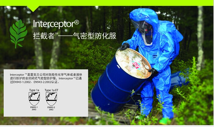 雷克兰牌的雷克兰气密性最高级拦截者A级防化服产品:估价:500,规格:完善,产品系列编号:齐全 发布日期:2015-11-11
